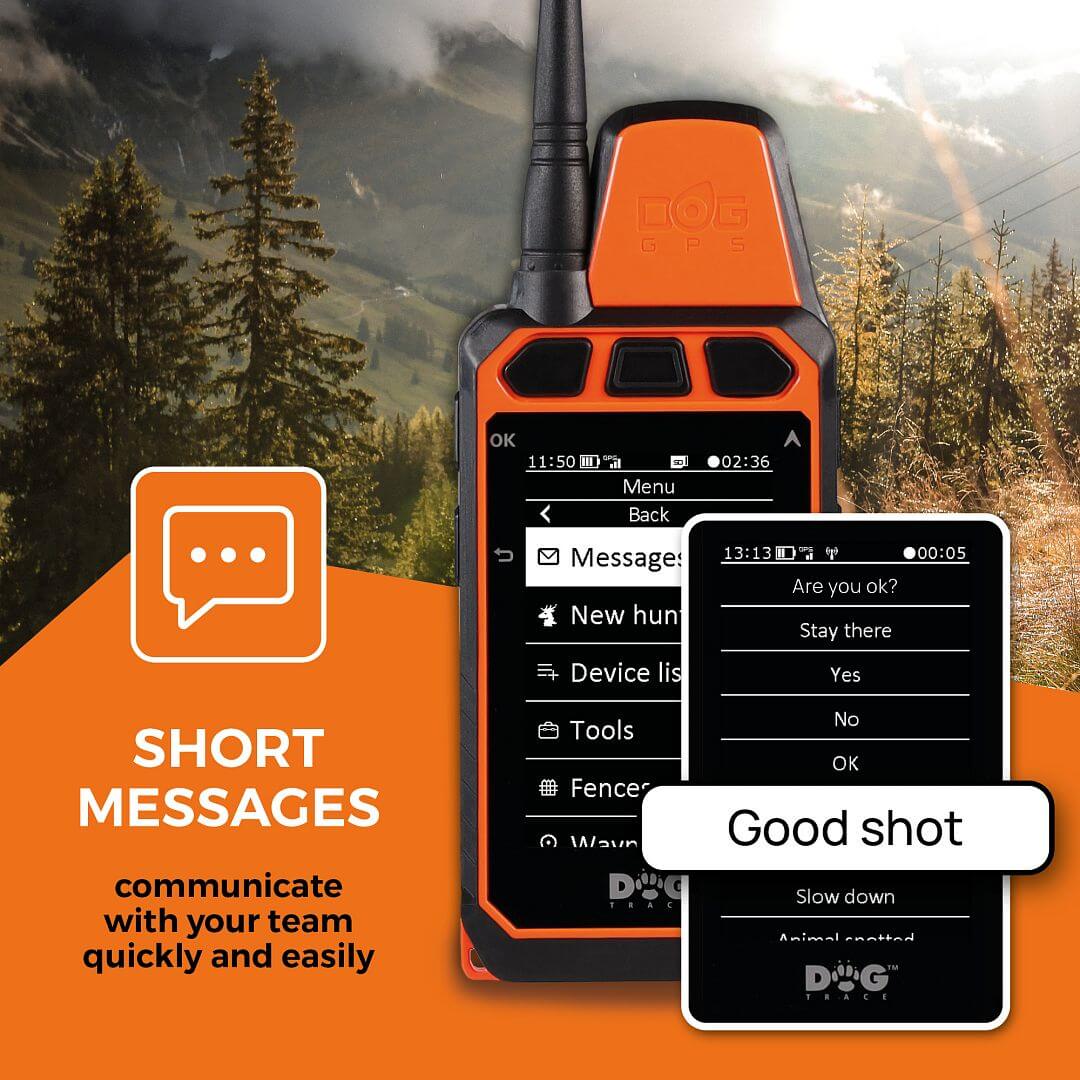 Optional preset messages for quick team communication between hunters. Device sharing feature. Bark detection with highly accurate sensitivity settings for the fastest possible response. Standard light function for X30T/TB collars. Individual hunting routes can be recorded on the handheld device.