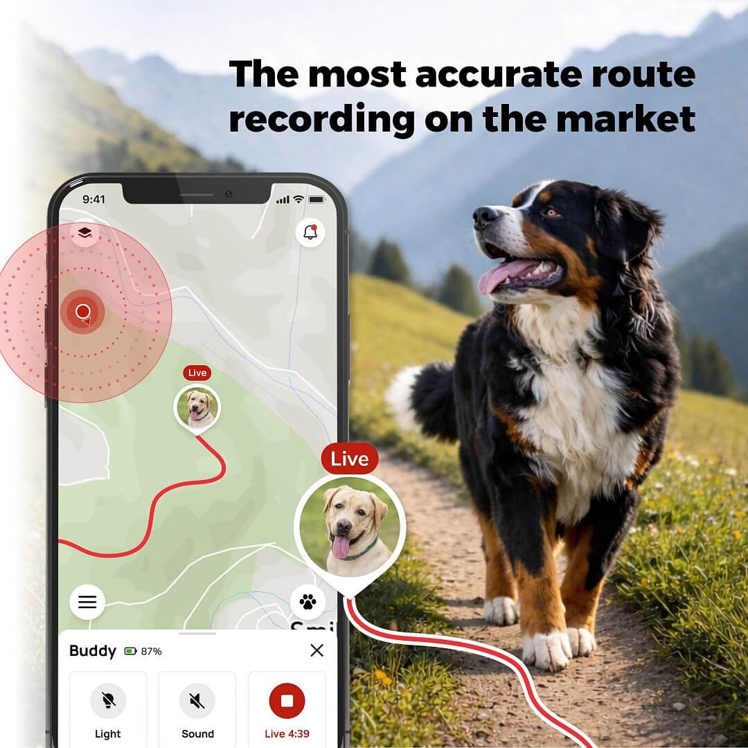 I'm sure you know the situation where your dog is too far away from you to hear the call. We have a solution in the form of features to control it directly from the mobile app. Before letting your dog off the leash, simply turn on live tracking mode and select the sound or vibration option.