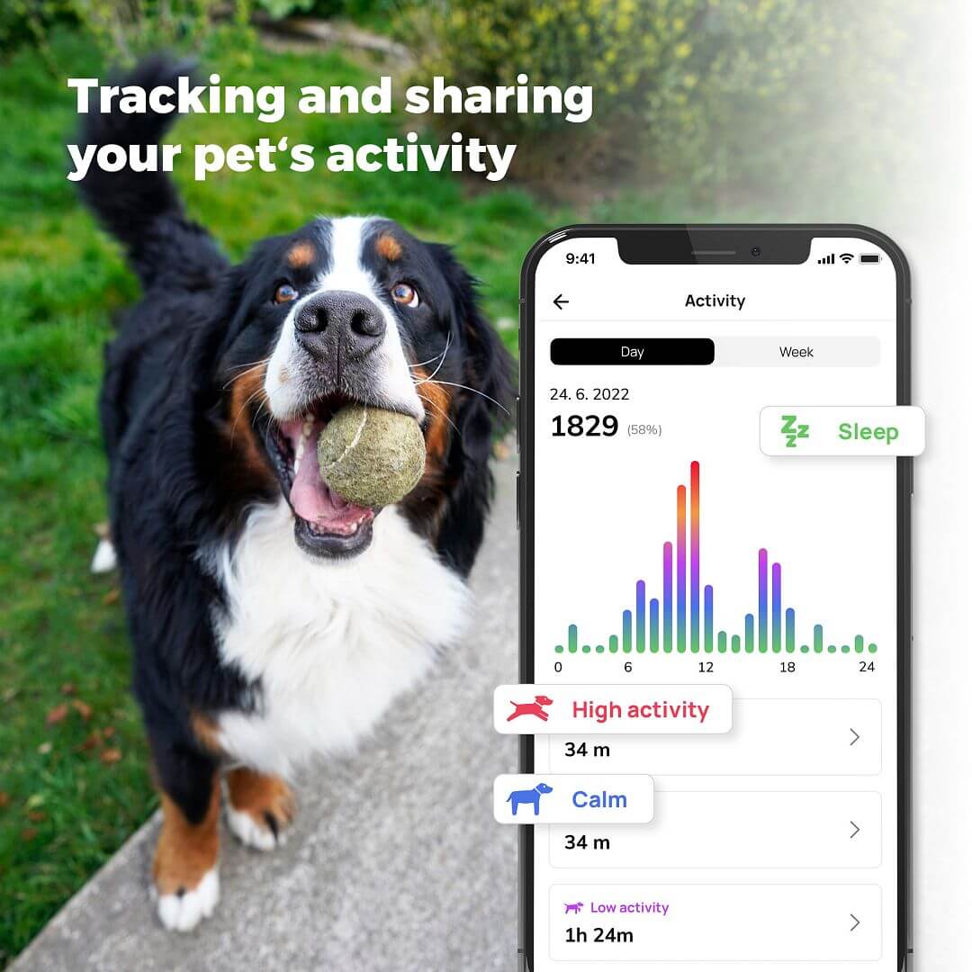 The intuitive Pet Tracker app opens the right door to a community of dog parents and their pets. Manage your pet's profile, see how many steps they've taken, how many miles they've run and how often they sleep or rest. AI monitoring will alert you to changes in your four-legged buddy' s behavior. The app is where the adventure begins and you'll be one step closer to your pet. You and your whole family.