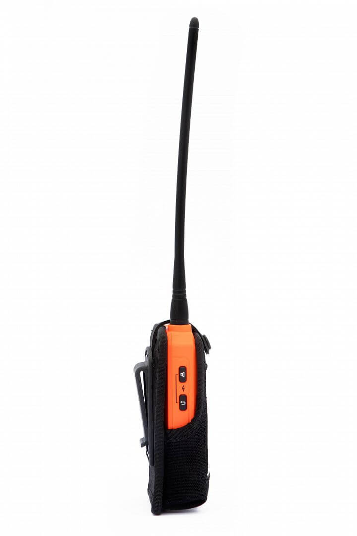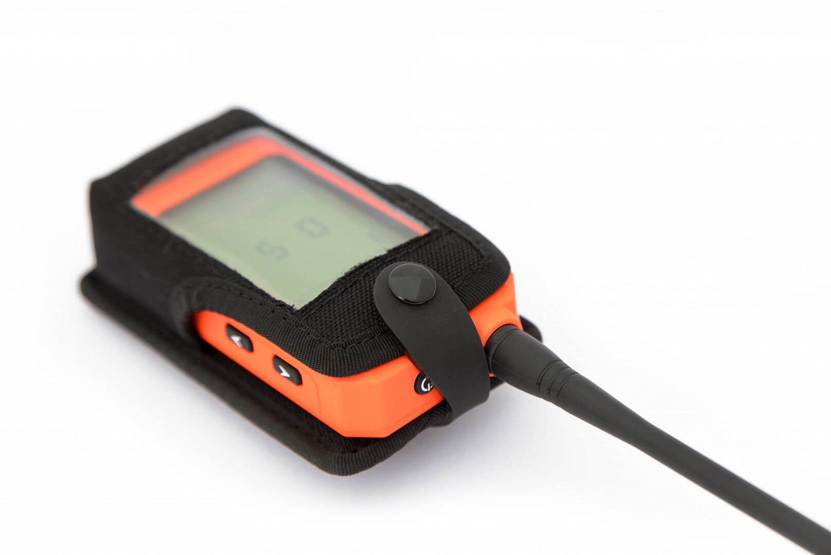 Etui na odbiornik GPS DOG. Etui chroni odbiornik przed uszkodzeniem, a jednocześnie zapewnia wygodne przenoszenie zamiast kieszeni. Z tyłu posiada klips umożliwiający przymocowanie do paska.