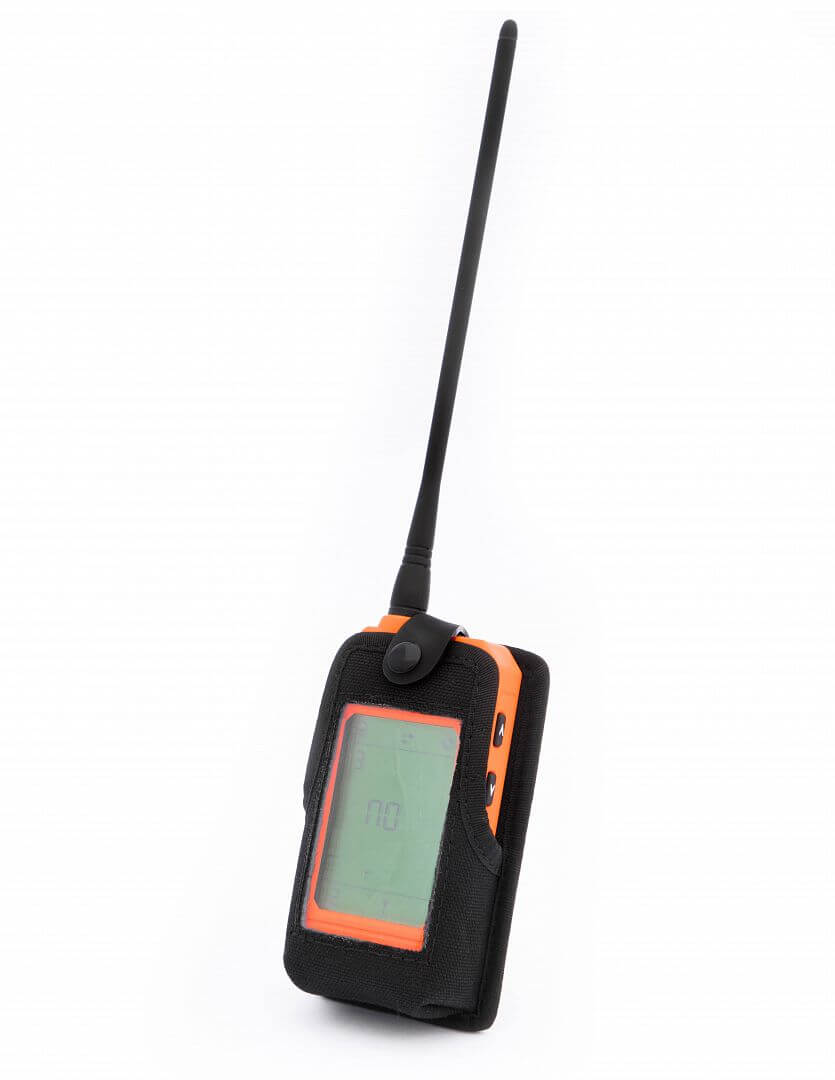 Z przodu wszyta jest przezroczysta folia, dzięki której można monitorować lokalizację swoje psy na wyświetlaczu, a po bokach miejsce na obsługę wszystkich przycisków bez wyjmowania odbiornika z etui.