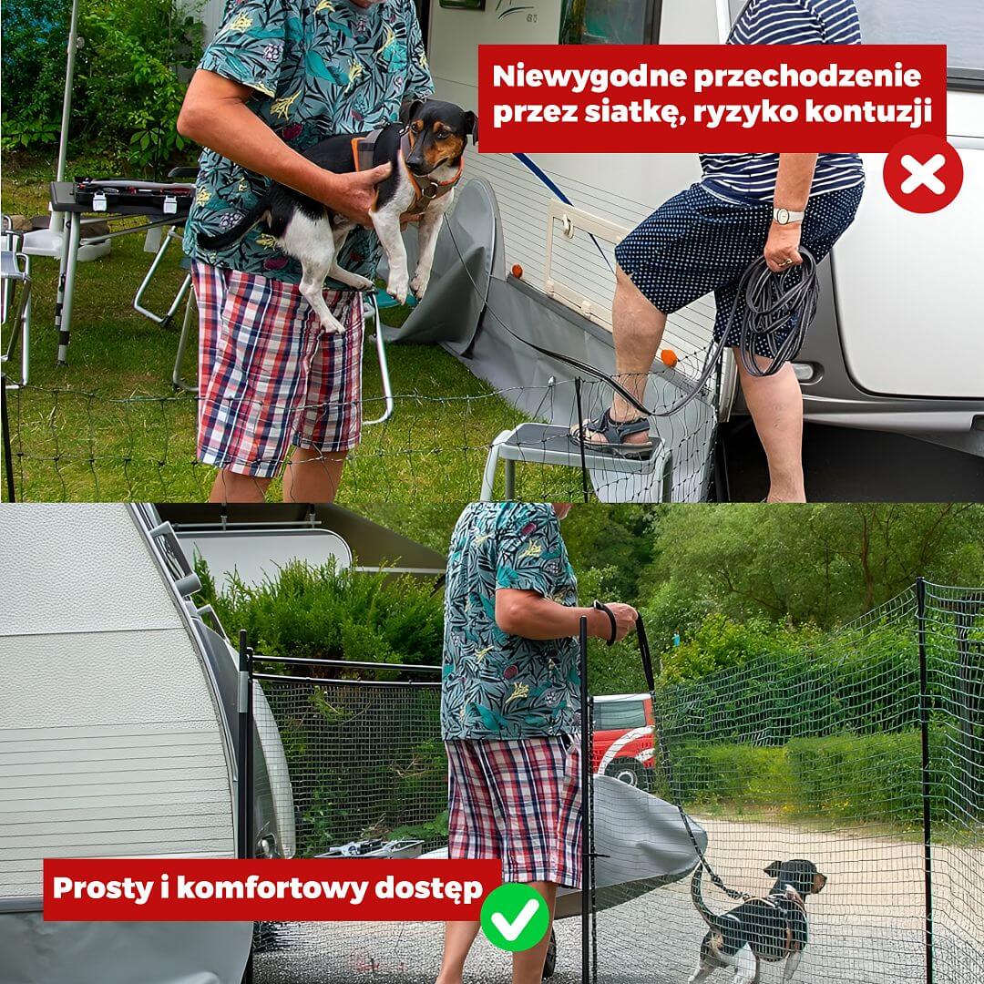 Zestaw dwóch nieprzewodzących siatek ogrodzeniowych dla psów FLEX z bramką