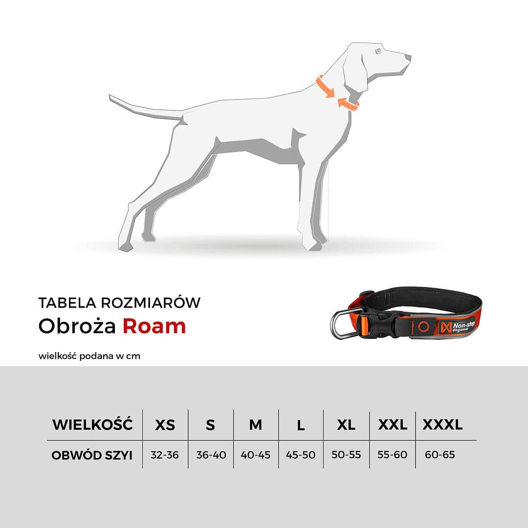 Tabela rozmiarów obroży dla psa Roam