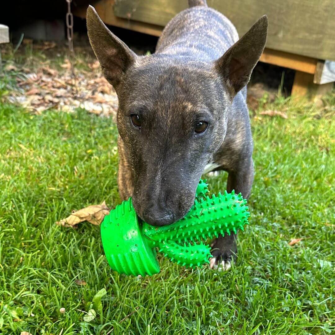 Higiena zębów jest ważna dla zdrowia i dobrego samopoczucia psa. Z pomocą gumowej zabawki dentystycznej w kształcie kaktusa zapewnisz swojemu partnerowi mechaniczne czyszczenie, zarówno zębów, jak i dziąseł. Co więcej, sprawisz mu ogromną radość. Zabawka wykonana jest z naturalnej, wytrzymałej gumy.