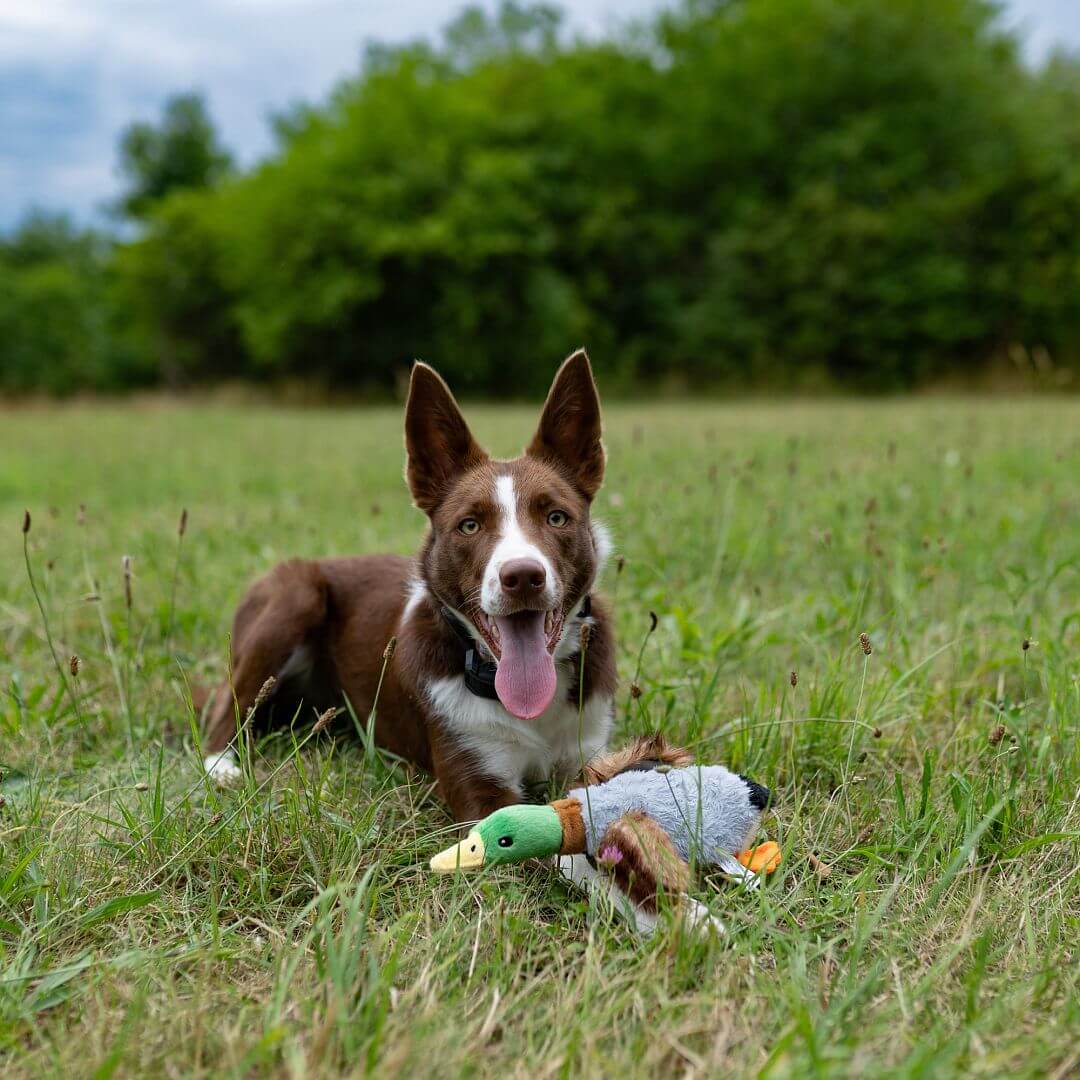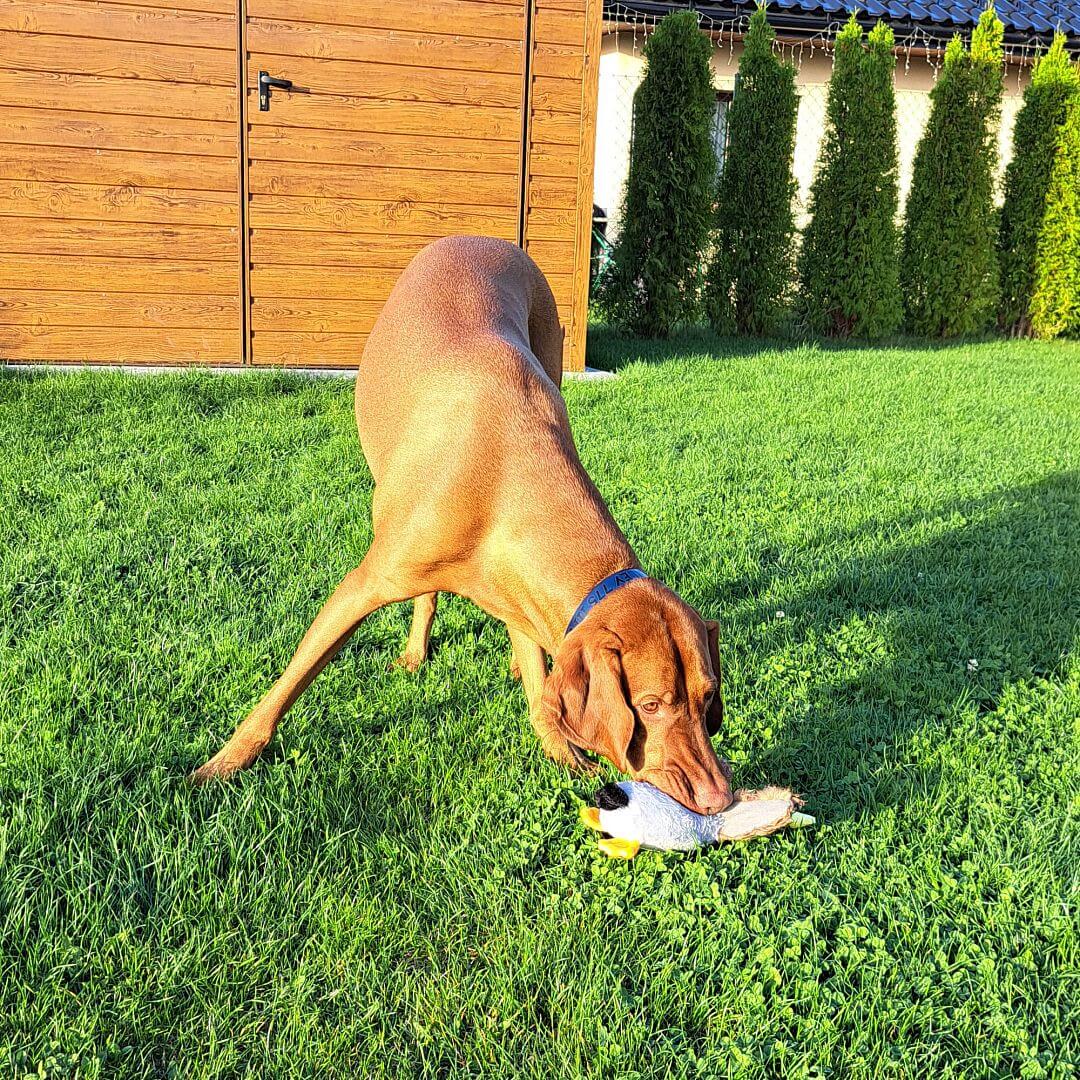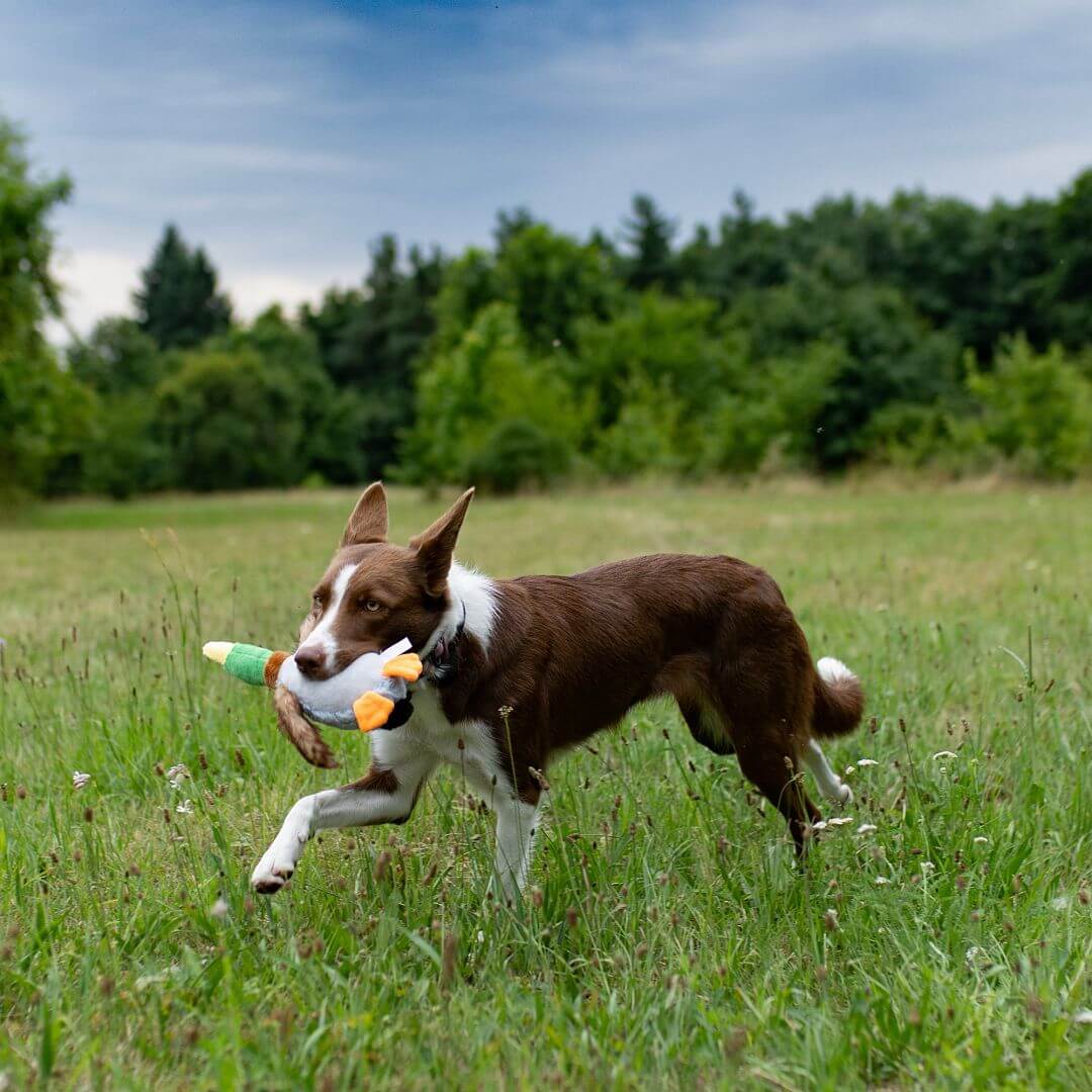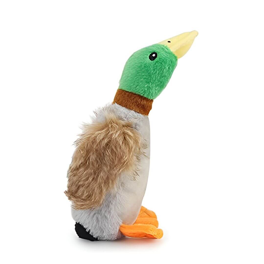 Kaczka dla psa wykonana z miękkiego i wytrzymałego pluszu. Do wspólnej zabawy lub treningu aportowania z psem.