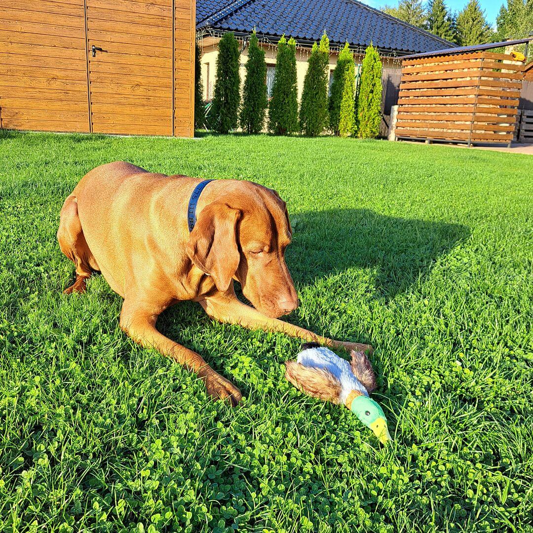 Potrzebujesz porady? Zapytaj o cokolwiek na temat produktu Gwiżdżąca zabawka dla psa - pluszowa kaczka, 28 cm