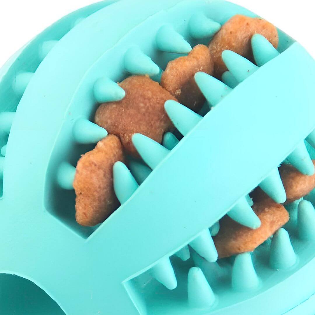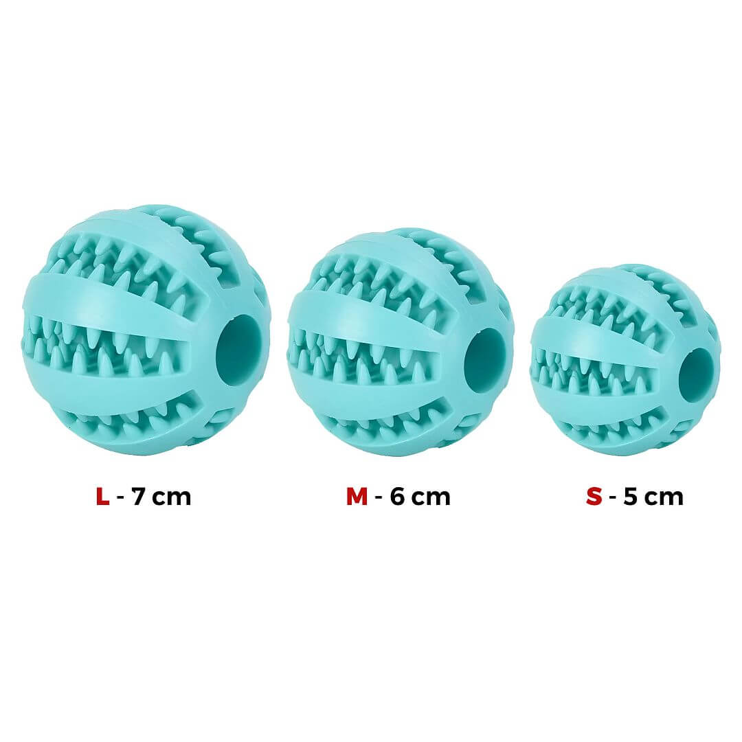 Interaktiwna piłka dla psa odświeża oddech i pomaga psu dbać o zęby. Mechanicznie czyści i usuwa kamień nazębny. Piłka jest dostępna w trzech rozmiarach: 5 cm, 6 cm lub 7 cm. Wykonana z nietoksycznego i niezwykle elastycznego materiału. Odpowiednia dla małych i dużych psów oraz szczeniąt.