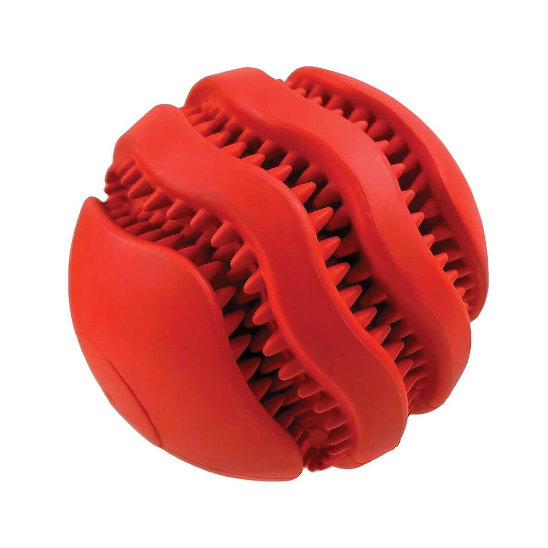 • czerwona piszcząca piłka gotowa do wypełnienia bąbelkami, a także do czyszczenia zębów (ø 9 cm)
