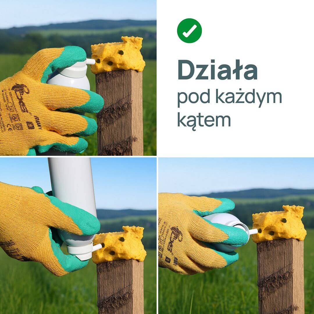 • Za pomocą rurki nanieś piankę PU na słupki, ogrodzenia lub pnie. Po 30 minutach, gdy pianka będzie nadawać się do cięcia, uformuj nośnik.